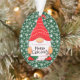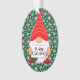Gnome fofo com chapéu de Papai Noel e placa de Feliz Natal, edite o nome no verso