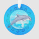 O golfinho que salta com um símbolo maori do sol com um oceano e um veleiro azuis atrás dele.