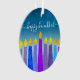 "Feliz Hanukkah." Uma ilustração lúdica, moderna e artística das velas de padrão de feitiço ajuda você a lançar no feriado de Chanucá no estilo. Velas azuis cortadas com padrões de folha de alumínio coloridos cobrem um gradiente de turquesa a fundo branco. No verso, personalize com seu nome familiar e ano, sobre uma pequena estrela taruga do padrão e do passado de David. Sinta o calor e a alegria da temporada de férias sempre que você desliga este adorável e colorido ornamento de manutenção de aníquia Hanukkah. Estão também disponíveis cartões, envelopes, papel de embalagem, canecas, cobertores, bandejas de serviço, decoração doméstica e muito mais. Um presente de excelente para alguém especial, até para você mesmo! Basta digitar seu nome familiar e ano atrás e você pode personalizar facilmente este ornamento de manutenção de Chanucá. Por favor, me mande mensagens com quaisquer perguntas ou solicitações.