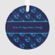 Na moda, adorno elegante para o seu decor HANUKKAH. O design mostra um impressão de sonho ciano em um padrão em série com texto personalizável de espaço reservado que você pode substituir por sua própria escolha de saudação e texto. O esquema de cores é azul e ciano da meia-noite. Outras versões estão disponíveis. Itens correspondentes podem ser encontrados na Coleção HANUKKAH por Designs Bereanos.