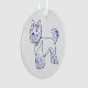 Klassisches Design in Blau-Weiß. Blaue Linienzeichnung der Hunderasse Yorkshire-Terrier auf weißem Untergrund.