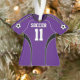 Edite a parte dianteira e o texto traseiro nnestes impressionante e de uns enfeites de natal roxos amáveis do jérsei de futebol. Edite o número do jérsei de futebol que está na parte dianteira e na parte traseira. Recreie seu jérsei de equipe favorito do futebol ou personalize seu próprio ornamento feito sob encomenda do futebol! Bola de futebol em cada luva. Edite a cor do fundo!