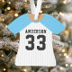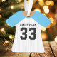 Celebre sua estrela de beisebol com este ornamento personalizado de camisa azul e pinheira branca. Perfeito para comemorar uma estação especial, jogador ou equipe. Personalize-o com um nome e número para criar uma manutenção exclusiva.
