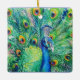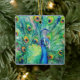 Um ornamento do feriado de um pavão, belamente detalhado e colorido na aguarela pelo artista Patricia Allingham Carlson. Uma adição perfeita a seu feriado que decora, para a árvore ou em qualquer lugar em sua casa. No regalia completo, mostra orgulhosa sua cauda, brilhando com todas as cores das jóias, dadas por natureza neste pássaro surpreendente.