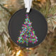 As luzes de uma árvore de Natal formam um efeito espantoso de um boque em tons de rosa, azul, verde e roxo a preto.