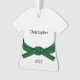 Um Enfeites de natal de karatê verde, que pode ser personalizado com seu nome na frente junto com o ano. Uma única vitória de Natal para as crianças.