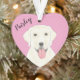 Ornamento Labrador Branco de Coração Rosa Personalizado