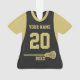 Jérsia desportiva de lacrosse negra e dourada com nome e número de equipe personalizados. Altere a cor da manga conforme preferido.