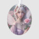 Uma bela fada rosa pálida, penteada, com asas rosa pálidas vestindo um vestido de lavanda pálido e um colar de pérolas segura uma rosa solteiro enquanto está em um campo de rosas. O texto pode ser facilmente alterado ou eliminado se pretender que a imagem fique sem texto.