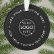 Logotipo preto simples e na moda personalizado de negócios em enfeites de natal redondo num estilo moderno minimalista. Você pode adicionar facilmente o logotipo de sua empresa e o texto personalizado (por exemplo, feriados felizes ou natal alegre) para o favor perfeito do promocional de feriado com um sentimento corporativo. #logo #business #natristmas #ornamento