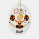Ornamento louro bonito do cheerleader do elogio preto & alaranjado. Fácil personalizar com seus nome & data. Visite nossa loja para ver este ornamento em uma grande variedade de cores da escola & de cores do cabelo