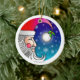 O papai noel alegre Moon contra um céu do feriado dos flocos de neve é o ornamento perfeito do feriado.