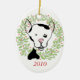 O cachorrinho manchado preto e branco adorável Bow Wow tem as orelhas aguçado um nariz cor-de-rosa iluminar cada árvore e decorações do feriado. Um chique e um motivo lunático perfeitos para amantes do jardim. um original, um de um presente amável para você ou seus amados!