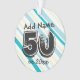 Personalizável Único 50º Bday projetado para manter o Ornamento com listras azuis e verdes coloridas e texto legal, esbranquiçado, cinquenta. Aniversário personalizado com talento personalizado para uma Celebração do Grande Cinquentenário para os 50 anos.
