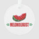 O MELONOLOGISTA é um título humorístico para alguém que ama melancia. O design apresenta uma grande fatia excelente de melancia vermelha, com uma casca verde listrada e algumas sementes de melancia preta, com uma borda vermelha ao redor do ornamento. Personalize-o com suas informações personalizadas - nome, data ou outras palavras. Perfeito para aqueles que gostam de comer melancia, jardineiros e fazendeiros cultivando melancia, restaurantes servindo melancia, mercados e lojas e mercados de fazendeiros vendendo melancia, pessoas em competições de cuspir melancia, amantes de melancia em todo lugar!