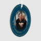 Na moda, moderno azul escuro e escuro, o Enfeites de natal BEST GRANDPARENTS, mostrando uma foto personalizável no centro - carregue sua própria foto (quadrada) - e ao redor da borda está um texto personalizável que lê MELHOR AVÓ - TODO ANO ROUND, que você pode substituir por sua própria mensagem, por exemplo PRIMEIRO NATAL. As bordas são decoradas com traços de bolhas dourados falsos. A design é repetida no reverso. Disponível em outras cores.