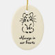 Adicione o nome do seu Hamster ao reverso do Keepsasasasaque Crie a manutenção de um amado amigo peludo. Este ornamento de hamster mostra um desenho de tinta de um hamster sentado e tem o slogan "Sempre em nossos corações". Você pode adicionar o nome do seu próprio hammy ao contrário. O ornamento é um tom de bisque delicado para ser tocado com qualquer decor.