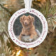 Honre seu melhor amigo com um ornamento personalizado de memorial de fotos. Esta única manutenção do ornamento memorial de animais de estimação é o presente perfeito para você, família ou amigos para prestar tributo ao seu amado. Esperamos que seu ornamento memorial traga paz, alegria e memórias felizes. Citação: "Sua vida foi uma bênção, sua memória um tesouro, você é amado além das palavras, perdido além da medida". Personalize com fotos favoritas de cães de estimação ou gatos e nome. O pedido é de dois lados, você pode fazer duas fotos favoritas, uma em cada lado. Personalize o nome na frente e as datas na parte de trás. COPYRIGHT © 2020 Judy Burrows, Black Dog Art - Todos Os Direitos Reservados. Ornamento Memorial de Pet Keepsasasasaame de Foto de Cão Personalizado