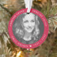 Enfeites de natal moderno e simples de memorial fotográfico para celebrar a vida do seu ente querido num estilo moderno minimalista de design a rosa quente. A design de modelo pode ser facilmente personalizada com sua própria foto e texto para criar uma homenagem especial a seu ente querido ou como parte de seu funeral, memorial ou celebração da vida. A imagem mostrada é apenas para fins de ilustração para ser substituída pela sua própria foto. A imagem marcadora é de uma bela mulher com cabelo louro ondulado vestindo um topo mestiço e sendo filmada em preto e branco monocromático.