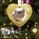 Crie um adorável ornamento memorial de manutenção para um gato adorado intitulado FOREVER IN OUR HEARTS e incluindo a sua fotografia, nome e anos na frente e estilos de ornamento de dois lados incluem a opção de adicionar uma foto no verso. (DICA DA FOTO: para obter resultados mais rápidos/melhores, escolha uma foto com o assunto no meio e/ou pré-plante em forma quadrada ANTES de fazer o upload e ela preencherá o espaço de fotos perfeitamente.)