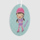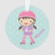 Um desenho de uma linda garota de patinagem com dois rabos de pônei. Ela tem um capacete cor-de-rosa, almofadas protetoras do joelho e cotovelo e skates de roletes quádruplos. Rosa e roxo, este design giro e adorável é excelente para meninas que adoram patinar roller! Fundo de bolinhas e verde de menta. Personalize com o nome da criança e o alfabeto no chá da menina!