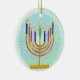 Uma bela menorah de nove velas com velas acesas, perfeita para Chanucá!