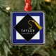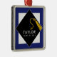 Formando o presente de manutenção apresentando boné de formatura preto e design de torneira dourada sobre um fundo azul. Editar texto para adicionar o nome do formando e o ano de classe do mais velho.