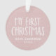 Celebre e comemore o primeiro Natal do bebê com este adorável e simples ornamento fotográfico. Apresentando "meu primeiro Natal" em uma peça lúdica em um fundo cor-de-rosa-neve, este adorno bonito também tem espaço para texto personalizado para o nome e o ano e também uma foto no verso. Este primeiro enfeite de Natal faz um presente de excelente para novos pais ou pode ser comprado para sua própria família!