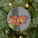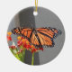 Um lindo ornamento monarca. Um dos lados mostra um monarca de asa espalhada e o outro apresenta uma lagarta monarca. Perfeito para o entusiasta monarca em sua vida.