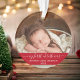 Elegante Na moda Trendy Roteiro Meu Primeiro Bebê Foto de Natal Ornamento Vermelho com Flocos de Neve de volta