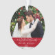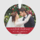 Elegante Na moda Trendy Roteiro Nosso Primeiro Ornamento Vermelho Foto de Casamento de Natal com Flocos de Neve de volta