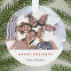Um ornamento de fotos de feriados de uma equipe empresarial moderna de na moda, com uma citação ousada de tipografia, "Felizes Feriados", em vermelho, com o nome de sua empresa em uma tipografia informal escrita à mão. A saudação e o nome da empresa podem ser facilmente personalizados para se adequarem aos seus próprios negócios. Uma design de tendências, diversão e profissionais para se destacar nesta temporada de festas! A imagem mostrada é apenas para fins de ilustração para ser substituída pelo retrato do seu próprio grupo ou outra foto. A imagem do marcador de posição é de uma equipe de 6 com suas cabeças se inclinando para a câmera em traje comercial ocasional.