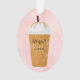 Esta moda e design de decoração personalizada absolutamente chic apresenta um fundo cor-de-rosa pincelado com um café gelado tanto na frente como no verso. Personalize com um nome e o ano!