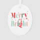Celebre a temporada com este charmoso enfeite de Natal Alegre e Brilhante, apresentando tipografia retrô ousada de feriado e acessórios festivos alegres, Este enfeite traz calor e significado para sua árvore, lareira ou exposição de Natal.