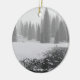 Um ornamento frente e verso da foto que caracteriza meu "papel de parede da angra nevado". Mostras uma laterais a versão do dia quando o reverso mostrar as árvores iluminadas para os feriados.