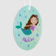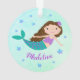 Este adorno de sereia fofo personalizado apresenta uma sereia branca e design de estrelas-do-mar sobre um fundo aqua de aqua de aquarela aquática. A design é a mesma atrás. Personalize o texto do script com um nome.