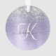 Personalize facilmente esse design de ornamento chic moderno com brilho bonito prateado brilhante em um fundo metálico roxo escovado.