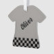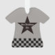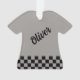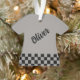 O ornamento de camisa desportiva de um rapaz bonito em cinzas e preto, com base e lugar marcados para o nome. Outro lado diz Nossa Estrela de Natal em uma grande estrela negra.