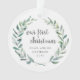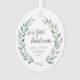 Você se casou este ano? Adicione uma memória à sua árvore com este ornamento de manutenção do casamento com uma coroa de oliveira e a mensagem, "Nosso Primeiro Natal como Sr. e Sr." Use a modelo para adicionar seu sobrenome e ano do seu casamento. Este ornamento também faz um presente de excelente para um casal novo gay para o seu primeiro Natal.