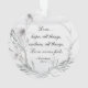 Elegante cristão personalizado "Nosso Primeiro Natal" retrata flores de aquarela e folhagem em tons de mudo de cinza. A frente apresenta os nomes da noiva e do noivo e a data. A parte de trás apresenta a Bíblia Verse 1 Corinthians 13:7-8, "Amor... espera que todas as coisas, resista a todas as coisas, o amor nunca falha." Se tiver uma pergunta ou desejar alterações, use o botão Chat nesta página para entrar em contato comigo.