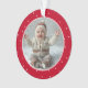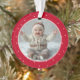 Novos pais podem comemorar o primeiro Natal do seu milagre bebê com este adorável ornamento fotográfico com uma bolinhas branca cor-de-rosa em vermelho, com uma fotografia de um lado e o seu texto no verso.