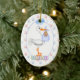 Um grande ornamento ou presente da lembrança para as avós novas, este ornamento cerâmico frente e verso caracterizam uma cegonha que está nos blocos do bebê que mantêm um bebê envolvido em uma cobertura azul na parte dianteira e em um grupo de pegadas minúsculas na parte traseira com um quadro cor-de-rosa e azul de poucos impressões da mão e de um arco azul do polkadot. A parte traseira está pronta para personalizar com nome e data de nascimento do seu bebê.