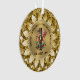 Design de ornamento colorida de pirata de Natal com uma coroa de férias em uma cana doce contra um fundo de impressão de textura de ouro metálico. Imagem de um fundo mandala de diamante dourado. Texto personalizado a preto.