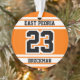 Ornamento alaranjado, preto e branco do número do esporte do jérsei com texto diy e cor do fundo. o ⭐ este produto é 100% customizável. 99% de meu design em minha loja são feitos nas camadas. Isto faz fácil para que você resize e mova os gráficos e o texto ao redor de modo que caiba cada produto perfeitamente. Alguns dos gráficos do texto têm pronto para preencher as caixas ou você pode clicar sobre o botão da PERSONALIZAÇÃO para adicionar, mover, suprimir, resize ou mudar de alguns da pia batismal ou dos gráficos. Feito com vetor de alta resolução e/ou os gráficos digitais para um impressão profissional. NOTA: (ESTE É UM IMPRESSÃO. Todo o design de produto do zazzle é "impressões" salvo indicação em contrário sob "sobre área deste produto") que o design será imprimido exatamente como você considera que na tela e no produto… satisfaz assim se certifica de quando você faz suas mudanças no resizing de algum dos gráficos ou do texto que cabe nas áreas corretamente e que seus soletração e fraseio são como você gosta d de ser em tamanho, cor e pia batismal. Se você tem quaisquer perguntas sobre o "DESIGN" ou precisa a ajuda por favor de me contactar em siggyscott@comcast.net ou de visitar minha relação da loja: http://www.zazzle.com/designsbydonnasiggy?rf=238713599140281212 (cópia e pasta) eu estarei feliz ajudar. Todas perguntas restantes (transporte, reembolso, a impressão, o produto, etc…) contactam por favor Zazzle ou o fabricante diretamente. Obrigado para o apoio e a parada por minha loja - DesignsbyDonnaSiggy. © Donna Siegrist