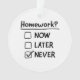 Quando deve você fazer seus trabalhos de casa? NUNCA!