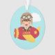 Acima, acima e afastado nos céus para uma aventura emocionante! Decore meninos sala ou berçário com este design colorido e do divertimento que caracteriza um menino bonito no equipamento do aviador de óculos de proteção e do chapéu grandes. O menino está acenando sua mão enquanto voa um avião vermelho e amarelo pouco entre as nuvens. Para os miúdos que amam os aviões e a aviação relacionaram coisas. Personalize com nome da criança no lado do plano.