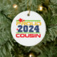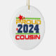 Ornamento datado de 2024 com estrelas coloridas e texto, presente de excelente para o novo primo de um nascer em 2024.