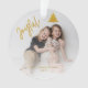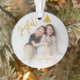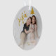 Ornamento de Natal alegre e alegre com fotos de Natal, apresentando árvores brilhantes e fotos nas partes frontal e traseira. Substitua pelas fotos clicando no botão "Personalizar" e adicione a mensagem e o nome personalizados no verso