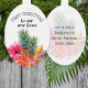 Primeiro ornamento personalizado de Natal com uma design havaiana de abacaxi e flores tropicais. Forma oval com texto personalizado em frente e atrás. Faça dele um "primeiro Natal em nossa nova casa" ou "Natal casado" com nomes na frente e endereço atrás.