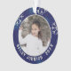 Estes Enfeites de natal bonito e personalizados apresentam sua foto e texto na frente e seu monograma no verso. Eles incluem um padrão de constelação azul-e-branca feito de símbolos de inverno. Use as modelos fáceis para adicionar sua imagem e seu texto.